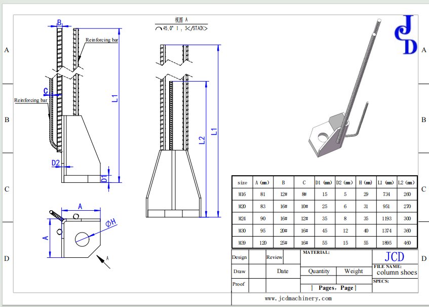 JCD Column Shoe is intended for the rigid bolted connection of precast concrete elements - such as columns with the foundation. We have full items manufacture experience from M16/M20/M24/M30/M39